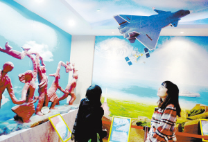 “中國(guó)夢(mèng)”文化館在京開(kāi)館 3月8日,人們?cè)凇爸袊?guó)夢(mèng)”文化館內(nèi)參觀(guān)殲-20戰(zhàn)斗機(jī)模型。當(dāng)日,由中國(guó)教育策劃學(xué)術(shù)研究會(huì)設(shè)立的“中國(guó)夢(mèng)”文化館在北京通州區(qū)于家務(wù)中學(xué)開(kāi)館。新華社記者 金良快 攝
