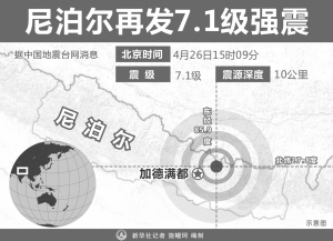 當(dāng)?shù)貢r(shí)間25日12時(shí)(北京時(shí)間14時(shí))許,尼泊爾中部地區(qū)突發(fā)7.9級(jí)強(qiáng)烈地震(中國地震臺(tái)網(wǎng)測(cè)定為8.1級(jí)),震中位于廓爾喀縣,距首都加德滿都約75公里,震源深度約20公里,屬強(qiáng)破壞性的淺源地震。尼泊爾政府現(xiàn)已宣布在29個(gè)地震重災(zāi)區(qū)實(shí)施緊急狀態(tài),動(dòng)員所有力量參與救援,并呼吁民眾為減少后續(xù)災(zāi)害做出貢獻(xiàn)。