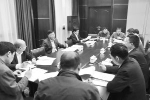 梁建松與相關(guān)單位負(fù)責(zé)同志商討縣級財政產(chǎn)業(yè)發(fā)展引導(dǎo)基金實(shí)施方案。(記者 劉俊濤 攝)