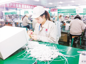 昨日,在三星手機耳機供應商日立亞電子淮陽有限公司生產車間,工人們正在生產線上忙碌著?;搓柨h近年來積極實施“工業(yè)強縣、旅游突破、城鄉(xiāng)統(tǒng)籌、四化同步”發(fā)展戰(zhàn)略,不斷調整工業(yè)產業(yè)結構,增加企業(yè)科技含量,以提升產品質量和市場競爭力,促進經濟轉型升級。(記者 侯俊豫 攝)