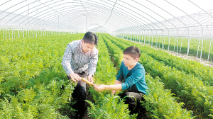 在扶溝縣汴崗鎮(zhèn)越秀蔬菜種植園區(qū),技術人員正在查看胡蘿卜長勢。該鎮(zhèn)大力推進種植業(yè)結構調整,流轉1300多畝耕地,建成了全國最大面積的單片反季節(jié)胡蘿卜種植基地,預計每畝產(chǎn)值可達萬元。(記者 王泉林 攝)