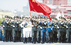 萬眾矚目中,由102人組成的中國人民解放軍儀仗隊通過紅場,這是中國首次派出儀仗方隊參加紅場閱兵。中國軍人軍容嚴(yán)整,士氣高昂,步伐堅定有力,走出了軍威,彰顯了國威。