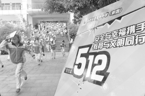 校園地震逃生演練    5月12日,安徽省合肥市蜀山區(qū)第五十中學(xué)(新區(qū))的學(xué)生們在演練地震逃生撤離。當(dāng)日是“5·12”汶川地震紀(jì)念日,該校開展逃生演練。活動旨在指導(dǎo)學(xué)生遇到地震時采用有序、正確的處置方法。