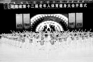省十二屆“老健會”開幕式現(xiàn)場節(jié)目表演。(記者 沈湛 攝)