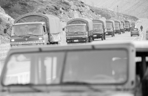 5月22日,西藏軍區(qū)日喀則軍分區(qū)運(yùn)輸車隊幫助群眾轉(zhuǎn)移財產(chǎn)。新華社發(fā)