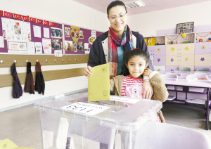 土耳其舉行議會選舉      6月7日,在土耳其首都安卡拉一個投票站,一個小女孩幫媽媽投票。土耳其議會選舉當日開始投票。執(zhí)政的正義與發(fā)展黨、主要反對黨共和人民黨、民族行動黨和親庫爾德的人民民主黨在內(nèi)的20個政黨參加競選,角逐550個議會席位。新華社發(fā)