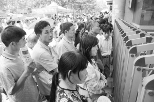 圖⑤考點(diǎn)大門外等候的家長(zhǎng)翹首期盼。