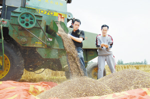 今年“三夏”,沈丘縣堅持做到進(jìn)地作業(yè)機械全部安裝秸稈粉碎還田裝置,一律執(zhí)行“低留茬、細(xì)粉碎”作業(yè),對不符合作業(yè)要求的機械,及時制止并督促就地整改,達(dá)不到標(biāo)準(zhǔn)要求的地塊,責(zé)成村級組織破茬耕翻,確保秸稈粉碎還田質(zhì)量。圖為付井鎮(zhèn)境內(nèi)一輛安裝秸稈粉碎還田裝置的聯(lián)合收割機正在田間作業(yè)。(肖飛 攝)