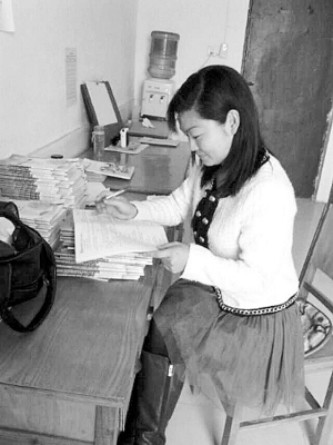 陳穎老師在批改學生作業(yè)