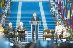 聯(lián)合國舉行《聯(lián)合國憲章》簽署70周年紀(jì)念活動(dòng) 6月26日,在美國加利福尼亞州舊金山,聯(lián)合國秘書長潘基文在紀(jì)念儀式上講話。紐約聯(lián)合國總部與聯(lián)合國誕生地美國舊金山市26日同時(shí)舉行活動(dòng),紀(jì)念《聯(lián)合國憲章》簽署70周年。新華社發(fā)
