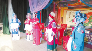 演出現場,臺上,演員唱腔優(yōu)美(如圖);臺下,看戲群眾被演員精彩的表演深深吸引,不時還跟著唱上幾句,熱烈的掌聲和叫好聲不絕于耳。