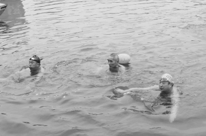 伸伸腰,扭扭腿……下水前,大家都要活動(dòng)筋骨,避免發(fā)生意外。根據(jù)分組,大家按照次序來(lái)到河邊,聽(tīng)到口令后,一個(gè)個(gè)魚(yú)躍河中。14歲的張毅來(lái)自許昌代表隊(duì),賽后他激動(dòng)地對(duì)記者說(shuō):“我很久之前就開(kāi)始接觸游泳了,但是冬泳剛剛練習(xí)了3年,參加這樣的比賽很開(kāi)心?!庇浾卟稍L發(fā)現(xiàn),冬泳愛(ài)好者比賽結(jié)束后很少關(guān)心自己的成績(jī),他們說(shuō)得最多的是“爽”。一位冬泳愛(ài)好者告訴記者,比賽成績(jī)不重要,重要的是這項(xiàng)運(yùn)動(dòng)能培養(yǎng)人的意志力以及使人保持開(kāi)朗樂(lè)觀的生活態(tài)度,這才是他所追求的。