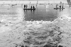 由于前幾天的雨雪天氣,我市的氣溫下降了不少,沙潁河邊更是寒風(fēng)凜冽,但這絲毫沒(méi)有減弱冬泳愛(ài)好者的熱情。青年男子組30米往返賽率先開(kāi)始。有的冬泳愛(ài)好者似乎有點(diǎn)緊張,還沒(méi)聽(tīng)到發(fā)令槍響就跳入水中,結(jié)果被裁判叫回重新比賽。和冬泳愛(ài)好者的緊張心情不同,圍觀市民則顯得比較悠閑,他們有的在討論比賽的技巧,有的則在不停地為選手加油助威。