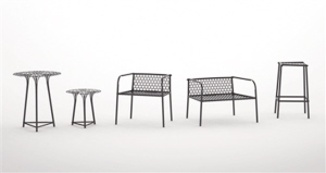 猛一看,這些戶外家具都是熟悉的樣子。傳統(tǒng)竹制品的“編法”,形成了如今的模樣。竹編藝術是隨著人類文明的進步而產生的,竹編的發(fā)展是隨著人類的進步和需要而發(fā)展的,也是極具東方意味的傳統(tǒng)工藝。將鐵質戶外家具采用了竹編工藝,保留了竹編家具的“精神”,或許就是設計師繼承傳統(tǒng)的一種表達。