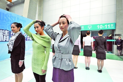 昨天東航“海選”現(xiàn)場,美女們進行形體展示。劉 瀏 攝