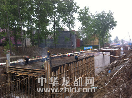 ????記者觀察到,周項(xiàng)路南半幅道路正在緊張施工,工地周邊已用彩鋼板圍了起來。昨日早上雖然下著小雨,仍有10多名工人正在進(jìn)行箱涵的鋼筋焊接。據(jù)介紹,該箱涵是一段全長(zhǎng)970米的明渠改造工程,呈大四方體狀,全部由鋼筋混凝土整體澆灌而成。據(jù)市住建局相關(guān)負(fù)責(zé)人介紹,其功能是將交通大道干渠里收集來的雨水,經(jīng)箱涵流至運(yùn)糧河內(nèi)。由于道路在原有基礎(chǔ)上擴(kuò)寬至50米,因此明渠必須改建成暗渠。箱涵工程結(jié)束后,緊接其后的是修建污水管網(wǎng)和道路沿線配套的水、電等市政基礎(chǔ)設(shè)施施工。