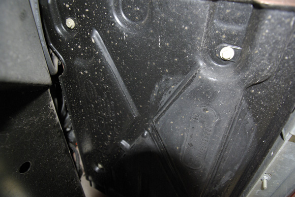 ????衛(wèi)士的大梁及中央差速器特寫(xiě),圖中可以看到衛(wèi)士的大梁非常的厚實(shí)粗壯。