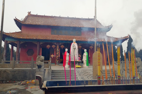 站在殿內(nèi)祭拜的“善童”(民間稱呼,即虔誠的香客)張新蘭以她的親身經(jīng)歷印證了趙俊明的話。今年75歲的張新蘭是西華縣紅花鎮(zhèn)人,她經(jīng)常到昆山女媧宮敬奉女媧娘娘?!拔矣浀煤芮宄?,1993年陰歷三月初九昆山女媧宮大殿奠基,當(dāng)天我就在現(xiàn)場,我們這些‘善童’都自發(fā)捐物捐錢,我還從家里拿木料過來捐到殿里?!睆埿绿m說。