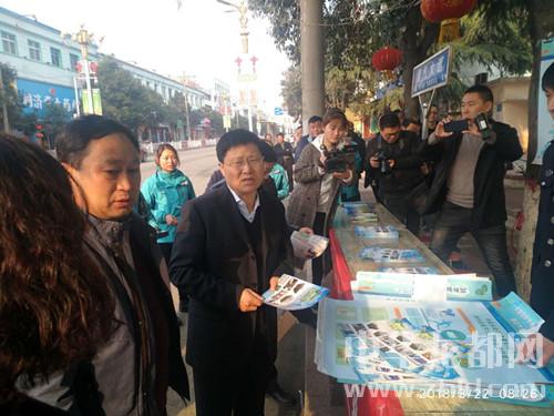 為紀(jì)念第26屆“世界水日”和第31屆“中國水周”,3月22日上午,鹿邑縣在紫氣大道中段縣政府大門前開展以“安全、節(jié)水、生態(tài)”等內(nèi)容為主題的宣傳活動(dòng)。鹿邑縣領(lǐng)導(dǎo)梁建松、宋濤、肖西國、楊彩到現(xiàn)場指導(dǎo),要求進(jìn)一步加大宣傳力度,在全縣上下迅速掀起護(hù)水、愛水、節(jié)水熱潮。
