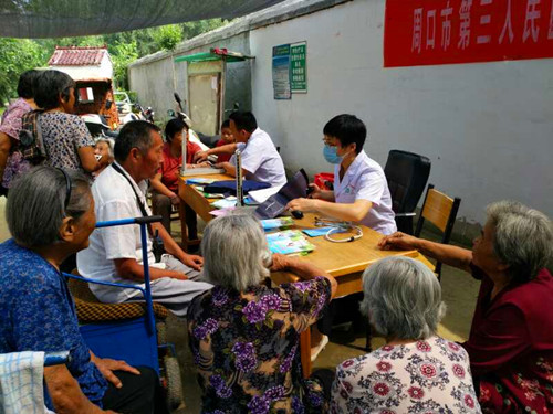 中華龍都網(wǎng)訊(周口報(bào)業(yè)全媒體記者 高洪馳 通訊員 李四軍)6月22日,周口市第三人民醫(yī)院組織該院外科、內(nèi)科和中醫(yī)科醫(yī)護(hù)人員,走進(jìn)川匯區(qū)文莊社區(qū),舉辦“健康扶貧巡回義診”活動,免費(fèi)為村民送醫(yī)、送藥、送健康,受到文莊村民的歡迎。