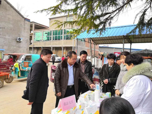 鄲城縣第二醫(yī)療健康服務集團副院長王海超、副院長王景春、錢店衛(wèi)生院院長李西鋒赴義診現(xiàn)場督導