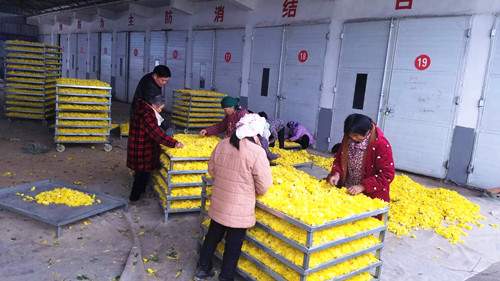 “我們提供優(yōu)質(zhì)種苗給種植戶,并且提供免費(fèi)的技術(shù)指導(dǎo)以及技術(shù)培訓(xùn),群眾在種植金絲皇菊的過(guò)程中遇見(jiàn)問(wèn)題都可以隨時(shí)來(lái)咨詢;在金絲皇菊成熟后我們會(huì)對(duì)老百姓所種植的菊花進(jìn)行保底收購(gòu),保證種植戶的利潤(rùn)不受影響。”據(jù)了解,目前僅張辛行政村就有菊花種植合作社3個(gè),種植金絲皇菊、雪菊、貢菊等各類菊花近千畝,帶動(dòng)全村貧困人員由原來(lái)的303戶、998人下降至現(xiàn)在的7戶、18人,全村人靠種植菊花實(shí)現(xiàn)創(chuàng)收致富。
