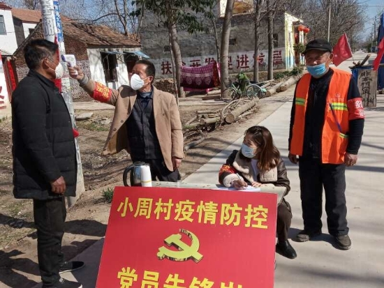 在虎崗鄉(xiāng)小周行政村路口的疫情防控黨員先鋒崗,3名入黨積極分子自發(fā)進(jìn)行輪流值守,積極向群眾宣傳疫情防控知識(shí),勸散聚集人員?!霸谝咔榉揽毓ぷ髦校覀兇寮皶r(shí)響應(yīng),設(shè)立了黨員先鋒崗,組織黨員和入黨積極分子參與卡點(diǎn)執(zhí)勤、疫情知識(shí)宣傳、摸底排查,建立起聯(lián)防聯(lián)控、群防群治的工作體系?!编惓强h農(nóng)科所駐該村第一書記謝付振說。