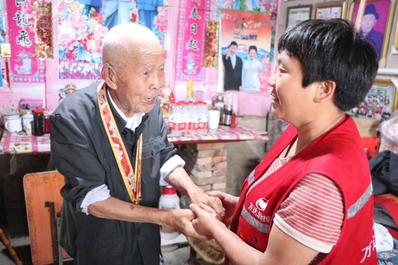 6月28日,細雨如織。萬達公益團隊的志愿者們駕車來到鹿邑縣任莊村看望慰問抗戰(zhàn)老兵張世珍,聽老兵講述抗日戰(zhàn)爭、解放戰(zhàn)爭的故事。