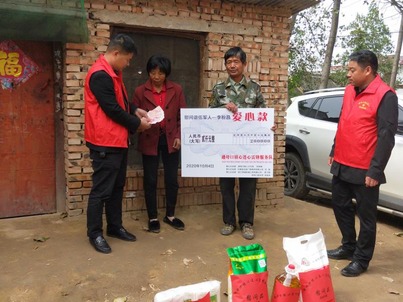 “感謝黨!感謝政府,感謝志愿者們在節(jié)假日跑這么遠(yuǎn)來看望我們……”太康縣遜母口鎮(zhèn)五所樓行政村李老莊村退役老兵李粉昌握著鎮(zhèn)人大代表、心連心雷鋒服務(wù)隊(duì)隊(duì)長張新靜的手,激動(dòng)地訴說著心聲。10月4日,遜母口鎮(zhèn)人大代表、心連心雷鋒服務(wù)隊(duì)隊(duì)長張新靜帶領(lǐng)志愿者李雨來、安闖將、周雷、劉會強(qiáng)、程婷婷等人來到李粉昌家中,給他家送去2000元愛心款和米、面、油等生活用品。
