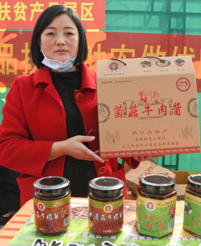 劉建新原來是一名廚師,2018年在村扶貧車間辦起小型食品加工廠,生產(chǎn)菌菇牛肉醬、風(fēng)味椒麻雞、五谷雜糧粉等特色農(nóng)產(chǎn)品,去年掙了10多萬元。今年受疫情影響,前半年賠了六七萬元,還欠村民工資3萬多元,又回到返貧的邊緣,急得他日夜難眠。