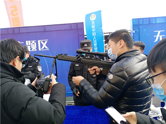 活動現(xiàn)場設(shè)置了“反假幣主題區(qū)”“消防主題區(qū)”“防電詐主題區(qū)”“禁毒主題區(qū)”“互動區(qū)”等形式多樣的功能展示區(qū),現(xiàn)場接受群眾咨詢,與市民深度互動,讓市民近距離體驗、全面感受人民警察的日常工作。除此之外,民警還進行了槍械展示、無人機展示等內(nèi)容。
