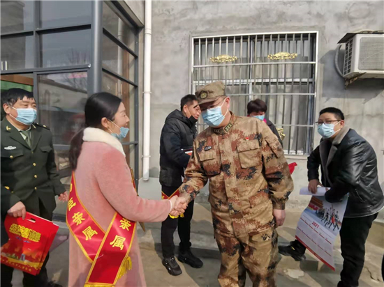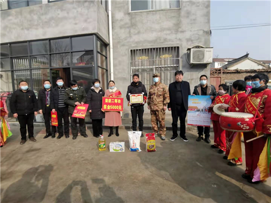 歡慶的鑼鼓敲起來,歡樂的秧歌扭起來。1月26日,淮陽區(qū)人武部政委杜寶森、區(qū)退役軍人事務(wù)局局長董天祥一行前往該區(qū)鄭集鄉(xiāng)七里河村,為二等功榮立者徐亞濤軍屬送去立功喜報。