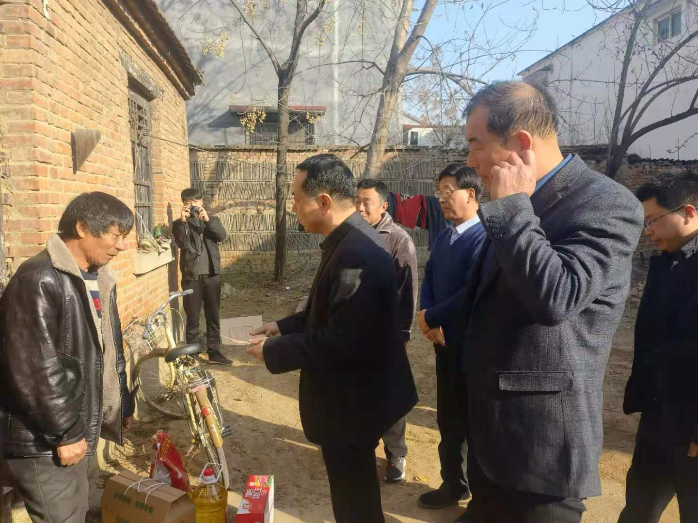 敢莊行政村困難群眾苑海軍腿腳不便,妻子雙目失明,一個(gè)女兒已經(jīng)出嫁,家庭經(jīng)濟(jì)困難。程若光在了解了苑海軍的家庭情況、身體狀況、生產(chǎn)生活問題后,問他們目前存在哪些困難,有什么事區(qū)里、鄉(xiāng)里急需幫助的。苑海軍說(shuō),鄉(xiāng)、村對(duì)他照顧得很好,他對(duì)黨和政府的關(guān)懷非常感謝!