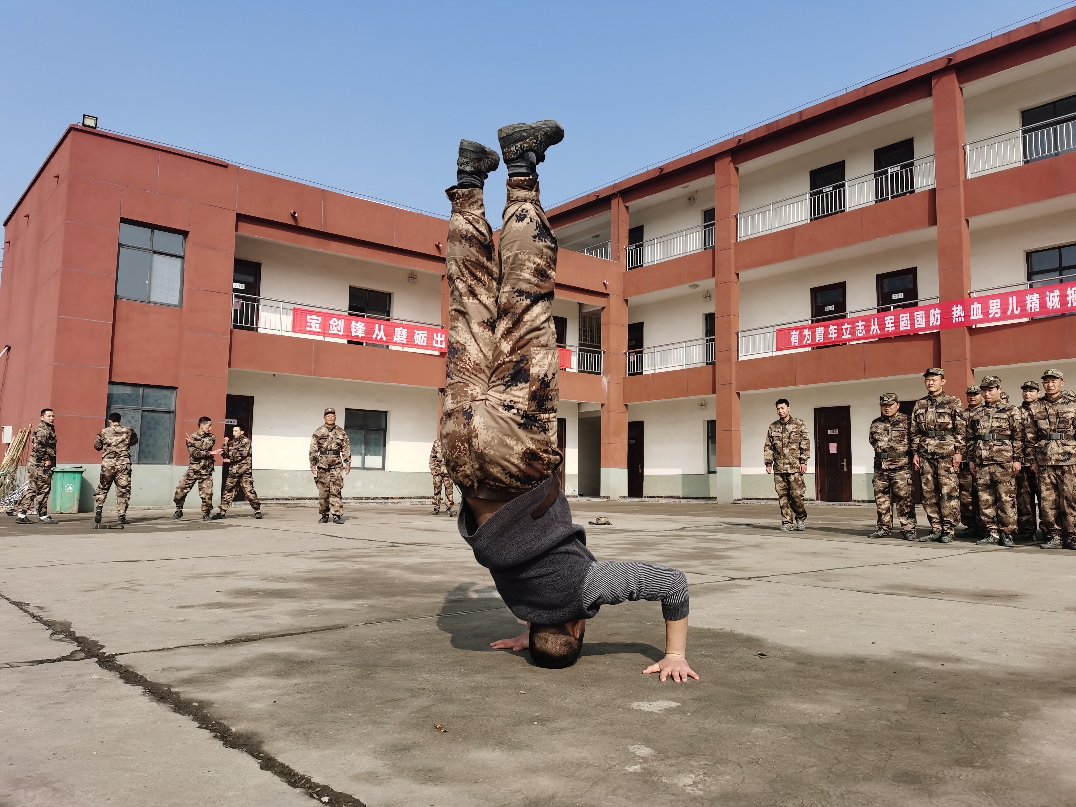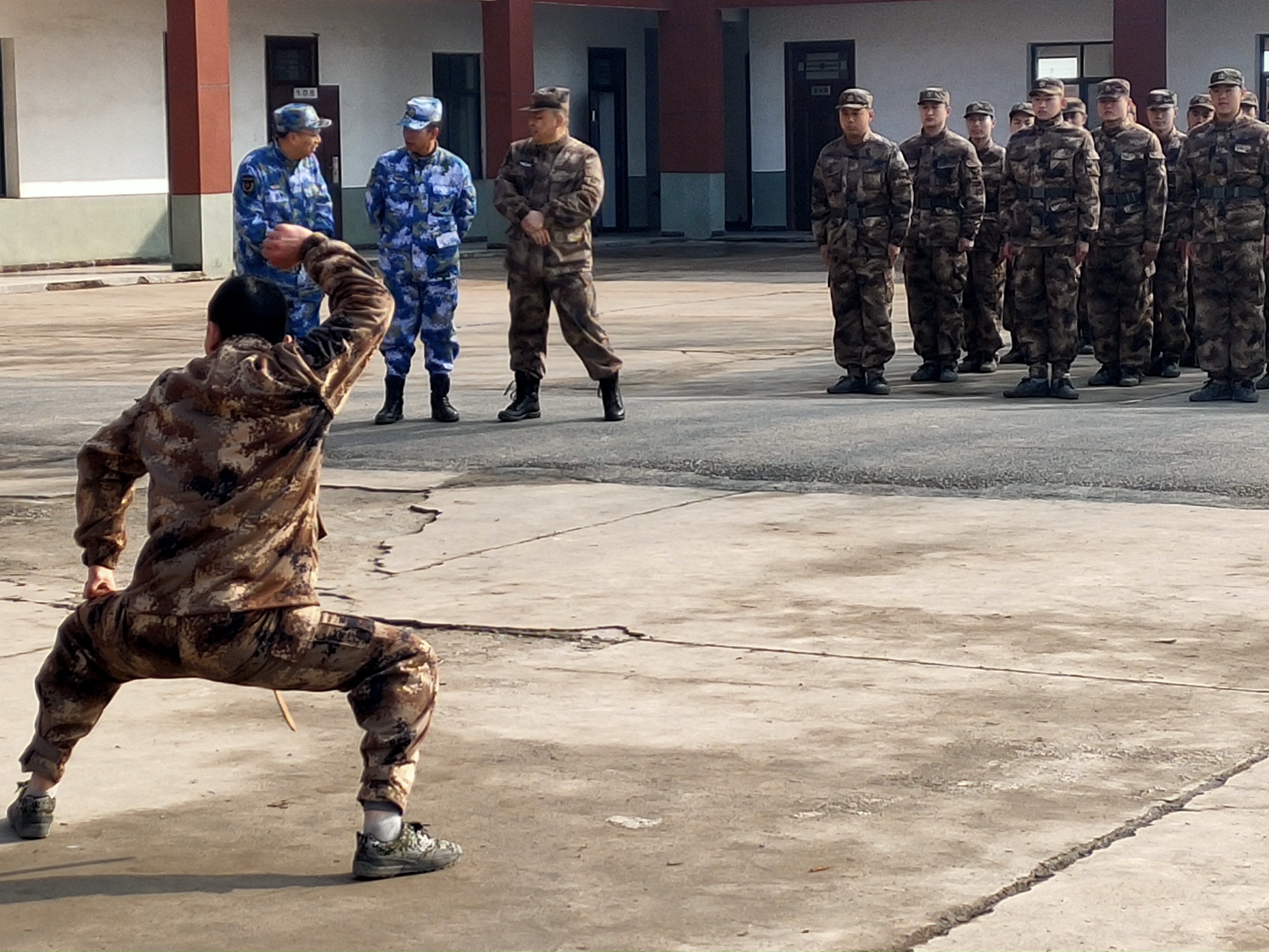 “報告首長,我叫趙三朋,畢業(yè)于武漢體育學院,武術套路、散打和兵器專業(yè)?!痹趹?zhàn)友們的歡呼聲中,趙三朋主動請纓表演了一套傳統(tǒng)武術套路,只見他一招一式行云流水、虎虎生威 ,前后空翻嫻熟到位、收放自如,迎得戰(zhàn)友們陣陣喝彩聲,湯維政也禁不住連聲稱贊。