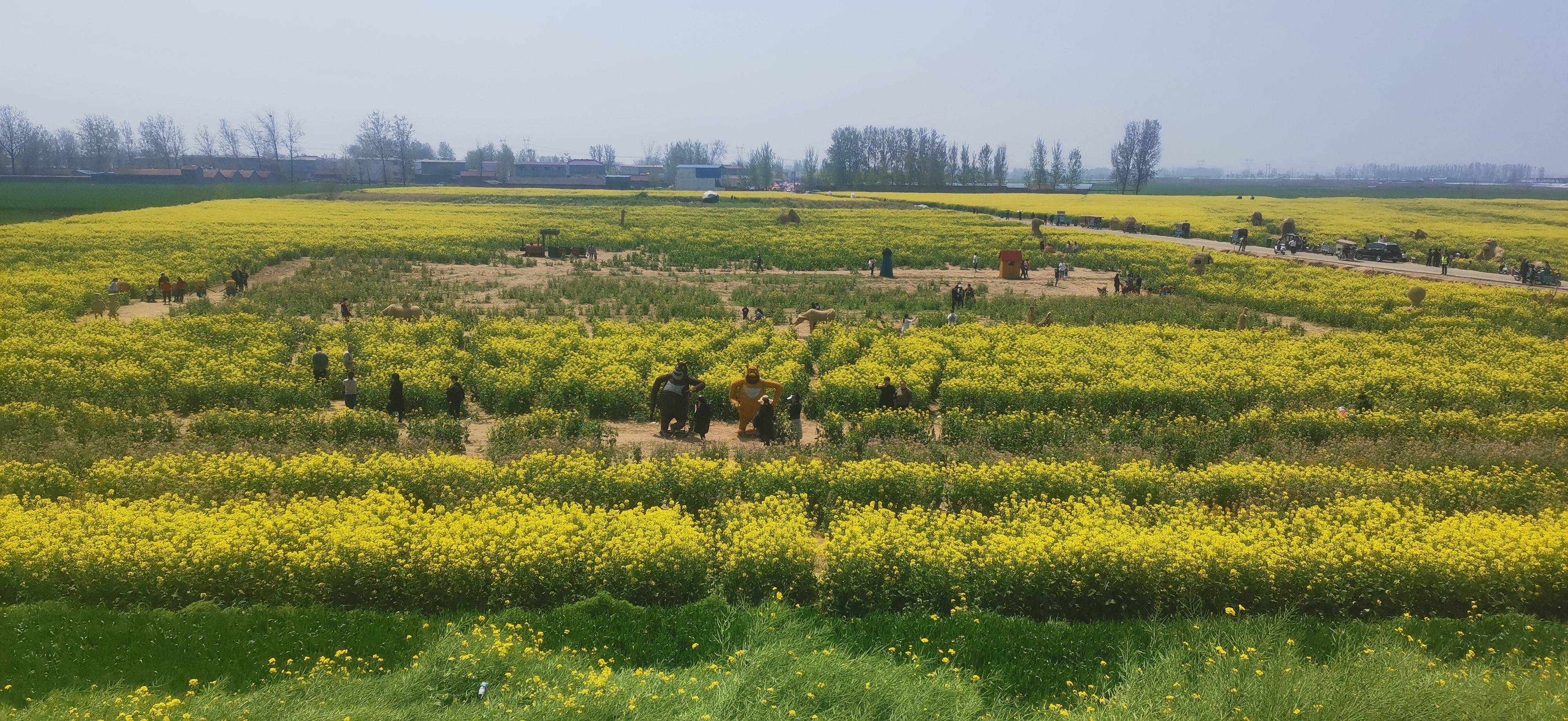 在明媚春光中,金燦燦的油菜花海含蕊吐翠,一望無(wú)邊,令人心曠神怡。伴隨著一陣滴滴聲響起,名為“福泉號(hào)”的觀光火小車載著30余名游客暢游花海,廣袤的田野里一片流金溢彩,引來(lái)車上游客開心得把歌唱;在碧綠的沙河中,眾多游客乘坐豪華游輪穿梭沙河兩岸,切身體驗(yàn) “船在水中行,人在花中走“獨(dú)特情趣;在稻草人樂(lè)園,熊出沒(méi)、小黃人、海綿寶寶等惟妙惟肖的稻草人矗立花海中,更是成為孩子們的樂(lè)園,吸引不少孩子游玩嬉戲。