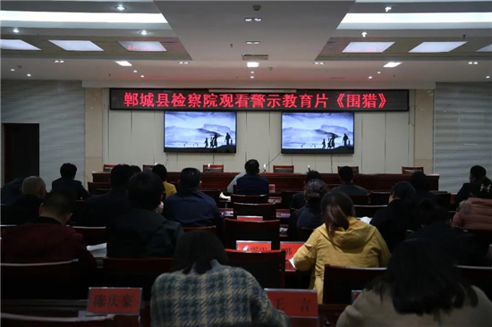 為推動(dòng)教育整頓查糾整改環(huán)節(jié)工作向縱深發(fā)展,把政治教育、警示教育與查糾整改有機(jī)結(jié)合,教育引導(dǎo)廣大檢察干警樹立正確的思想政治觀念,筑牢拒腐防變的思想道德防線,4月21日,鄲城縣檢察院組織全體干警觀看警示教育專題片《圍獵:行賄者說》。