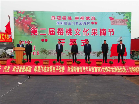 去年花爭艷,今年花更紅。2021年,豆門鄉(xiāng)黨委、鄉(xiāng)政府幫助武灣村提前謀劃了第二屆櫻桃采摘節(jié),成功申請了武灣櫻桃國家地理標(biāo)志產(chǎn)品,發(fā)行了具有宣傳效應(yīng)和收藏價值的櫻桃節(jié)紀(jì)念封,并提供了百萬級流量的銷售直播平臺,強化脫貧攻堅與鄉(xiāng)村振興有效銜接,以小雜果帶動大產(chǎn)業(yè),創(chuàng)建豫東櫻桃基地和河南鄉(xiāng)村旅游示范基地,把櫻桃節(jié)打造成引領(lǐng)鄉(xiāng)村振興、帶動產(chǎn)業(yè)發(fā)展、具有更大影響力的豆門名片。