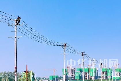 8月25日,在周口野生動物世界第二電源工程項目施工現(xiàn)場,30多名電力施工人員正在對40基桿塔引線進(jìn)行校正、綁扎、緊線作業(yè)。