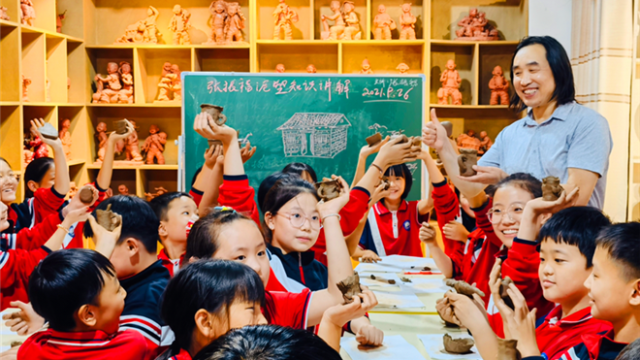 “這作品形象逼真,太生動了?!弊蛉?,在張振福鈞瓷泥塑藝術(shù)館,同學(xué)們被一件件憨態(tài)可掬的泥塑作品驚呆了,看到活潑、歡快、形態(tài)各異的泥塑兒童造型,大家紛紛稱贊。