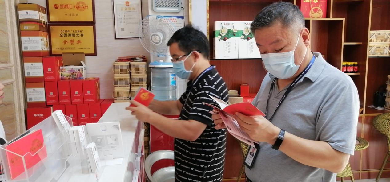 期間,共檢查了8家經營單位。發(fā)現(xiàn)一家水產品經營者涉嫌利用蟹卡說明書、獎牌等進行夸大宣傳;一家商超涉嫌利用酒包裝盒及標簽標示誤導消費者。執(zhí)法人員現(xiàn)場進行了筆錄,并下達詢問通知書,要求其提供相關證明材料接受詢問調查。