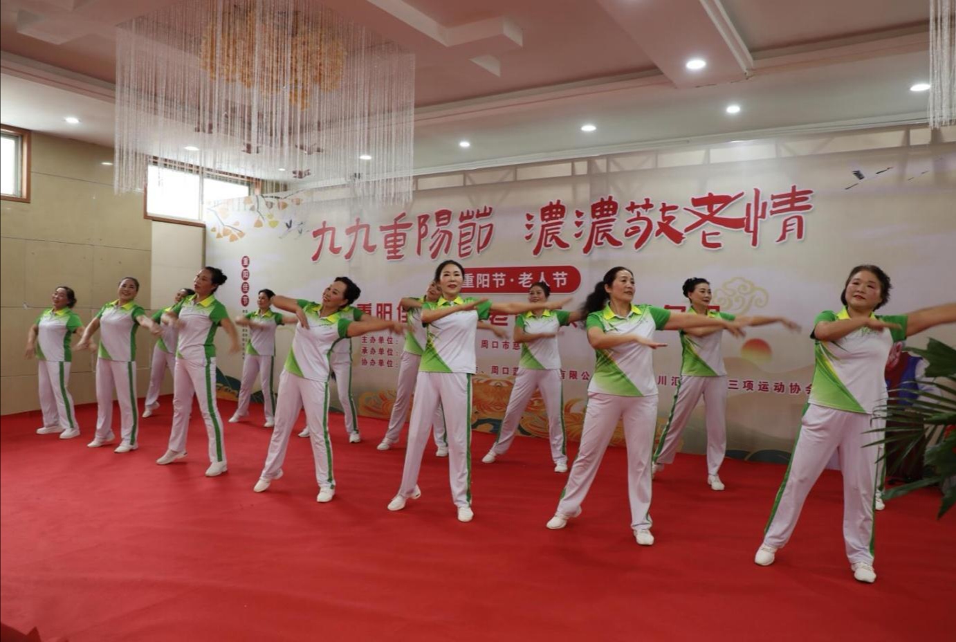 活動(dòng)現(xiàn)場(chǎng),熱鬧非凡。主辦方為每位老人奉上喜慶的紅圍脖,當(dāng)老人們披上紅圍脖,現(xiàn)場(chǎng)愛意濃濃、暖意融融。由周口市游泳協(xié)會(huì)會(huì)員們自編自演的歌舞《我和我的祖國(guó)》、《沒有共產(chǎn)黨就沒有新中國(guó)》讓現(xiàn)場(chǎng)氣氛熱烈,周口市游泳協(xié)會(huì)冰之花藝術(shù)團(tuán)表演的模特走秀、時(shí)裝展示,展現(xiàn)了新時(shí)代老年人的摩登風(fēng)采,電子管、吉他、薩克斯演奏、戲曲聯(lián)唱等一個(gè)又一個(gè)豐富多彩的文藝節(jié)目獻(xiàn)給老人們,在場(chǎng)老人們看得津津有味,臉上蕩漾著幸福的笑容。