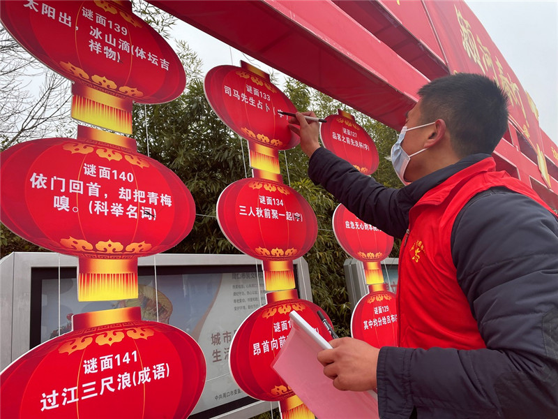 “阿姨您好!148號(hào)燈謎的謎底是‘香皂’。”2月15日,在周口市文化藝術(shù)中心西廣場(chǎng),正在舉行“潁河春燈——元宵燈謎猜猜猜”活動(dòng)?!拔易钕矚g猜燈謎了,猜對(duì)以后我還能拿到一個(gè)玩具小飛機(jī),真開心!”說話的這個(gè)小男孩姓汪,今年8歲,在今天這場(chǎng)猜燈謎活動(dòng)中,他是第一位給出正確答案的參與者。