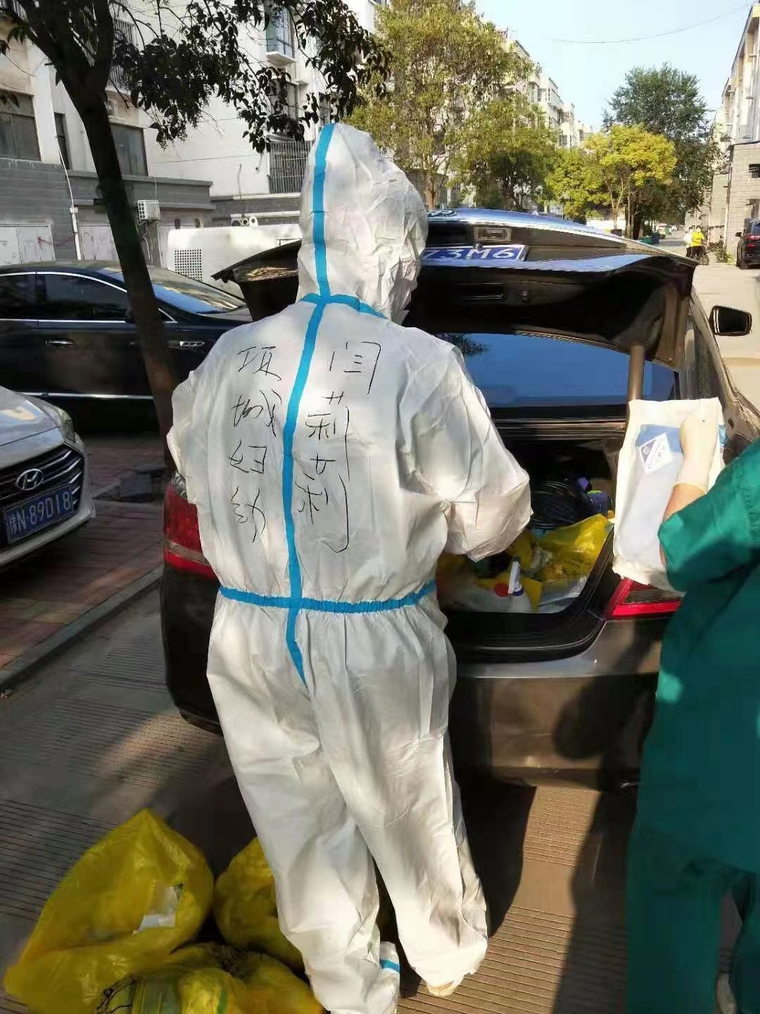 2021年11月,項城市婦幼保健院又一次接到前往扶溝游家村抗疫的通知,閆莉莉再次以逆行者的姿態(tài)前往抗疫前線采集核酸。核酸采樣是一項高強度工作,采集人員身著防護服后需要連續(xù)幾個小時不喝水、不去廁所。采樣時要手疾眼快、精準到位,薄薄的乳膠手套每次用冰冷的酒精消毒后都緊緊地貼在手指上,手指都被凍僵了。
