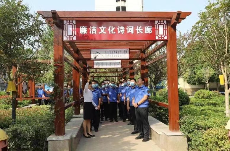 在建設(shè)大道與大慶路交叉口西南角的翰墨園內(nèi),黨員干部參觀了廉潔文化詩詞長廊,并就長廊中涉及的嚴以律己、廉潔奉公、為民情懷、家風(fēng)家訓(xùn)等典故及文化進行了詳細了解,接受了廉政文化熏陶;在中原路和七一路交叉口廉潔文化主題游園內(nèi),全體黨員干部重溫了入黨誓詞,對“三不腐”一體推進深刻內(nèi)涵、社會主義核心價值觀、偉大建黨精神、古圣先賢廉政思想、革命先輩廉潔風(fēng)范等內(nèi)容進行了認真學(xué)習(xí),領(lǐng)略了廉政思想,感受了廉潔基因。