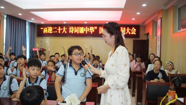 為迎接黨的二十大勝利召開、新中國成立73周年,進(jìn)一步促進(jìn)優(yōu)秀傳統(tǒng)文化進(jìn)校園,9月28日,經(jīng)開區(qū)蓮花路小學(xué)舉行“喜迎二十大,詩詞誦中華”國慶節(jié)詩詞大會(huì)。廣大學(xué)子積極參與其中,歌頌祖國,謳歌時(shí)代,以實(shí)際行動(dòng)續(xù)寫新時(shí)代的“詩與遠(yuǎn)方”。