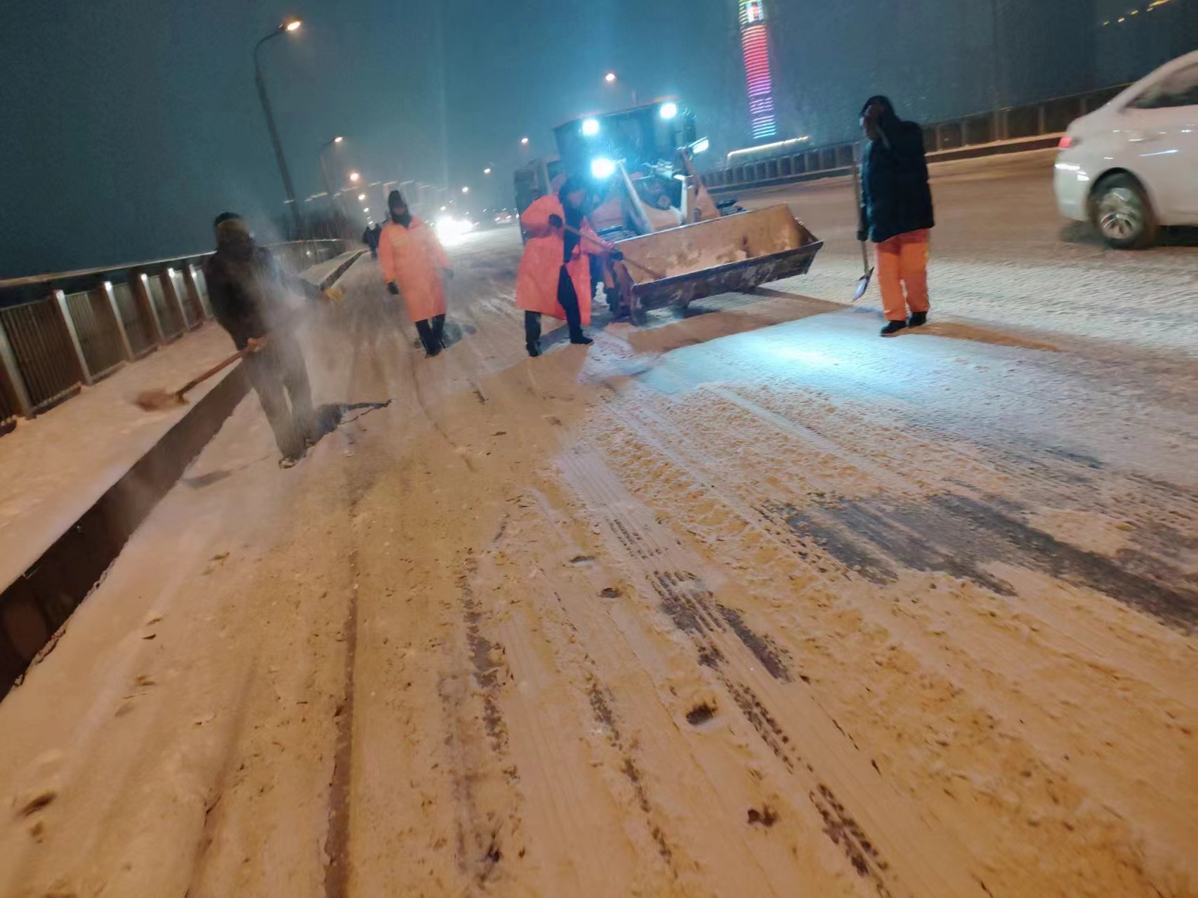 “我們?cè)谇逖┏耐瑫r(shí),還組織巡查隊(duì)伍加強(qiáng)對(duì)中心城區(qū)園林樹木、市政設(shè)施、戶外廣告牌等易發(fā)問(wèn)題點(diǎn)排查,及時(shí)發(fā)現(xiàn)并處置問(wèn)題,消除不安全因素,最大程度地降低降雪天氣造成的不利影響。”該局相關(guān)負(fù)責(zé)人表示,截至2月3日10時(shí),全市城管系統(tǒng)累計(jì)出動(dòng)應(yīng)急搶險(xiǎn)隊(duì)員15554人、雪鏟車6臺(tái)、雪滾車4臺(tái)、機(jī)掃車1臺(tái)、除雪機(jī)2臺(tái)、鏟車16臺(tái)、清運(yùn)車2輛、應(yīng)急車輛246輛、除雪設(shè)備88臺(tái)、除冰工具9362套、融雪劑388噸,對(duì)各自保障區(qū)域內(nèi)橋梁及主干道進(jìn)行除冰清雪。目前,中心城區(qū)各座橋梁、涵洞無(wú)積雪無(wú)結(jié)冰,主干道基本暢通,部分路段有積雪結(jié)冰現(xiàn)象,責(zé)任單位正在積極處置。