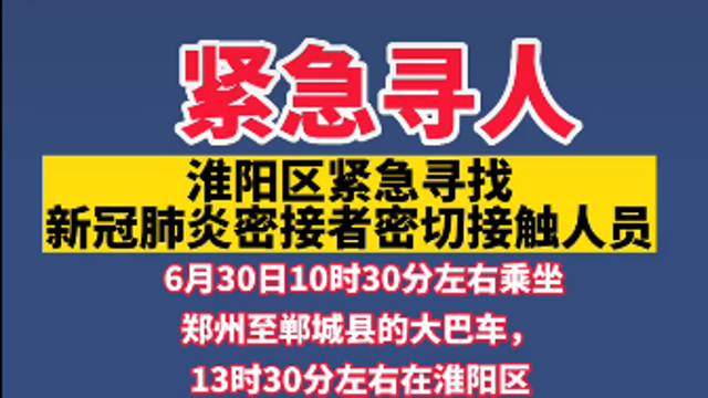 淮陽區(qū)緊急尋找新冠肺炎密接者密切接觸人員