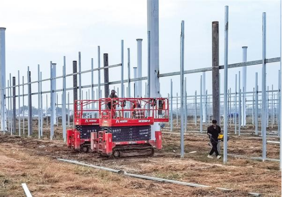 11月26日,淮陽區(qū)四通鎮(zhèn)時(shí)莊村的新能源高效現(xiàn)代農(nóng)業(yè)產(chǎn)業(yè)園建設(shè)現(xiàn)場(chǎng),工人們正緊張施工。