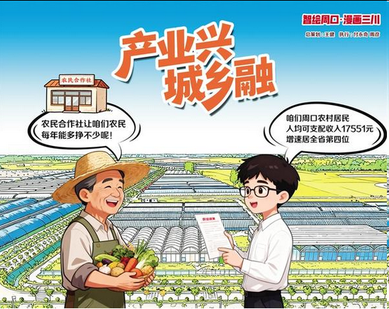 產業(yè)興旺是城鄉(xiāng)融合的核心動力。2024年,周口培育農民合作社2.76萬家、家庭農場3.95萬家、農業(yè)社會化服務組織1.33萬個,農村集體資產總額229.93億元,4893個村居均實現(xiàn)村集體經濟收益5萬元以上,農村居民人均可支配收入17551元、增速居全省第四位。