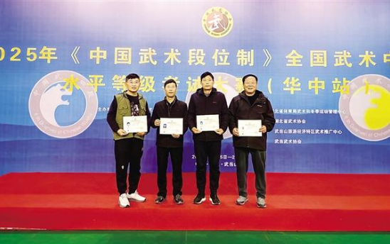 11 月 28 日,淮陽區(qū)選手王錦橋、陳百勛、段彥軍、彭中杰(從左至右)在領(lǐng)獎臺上合影。